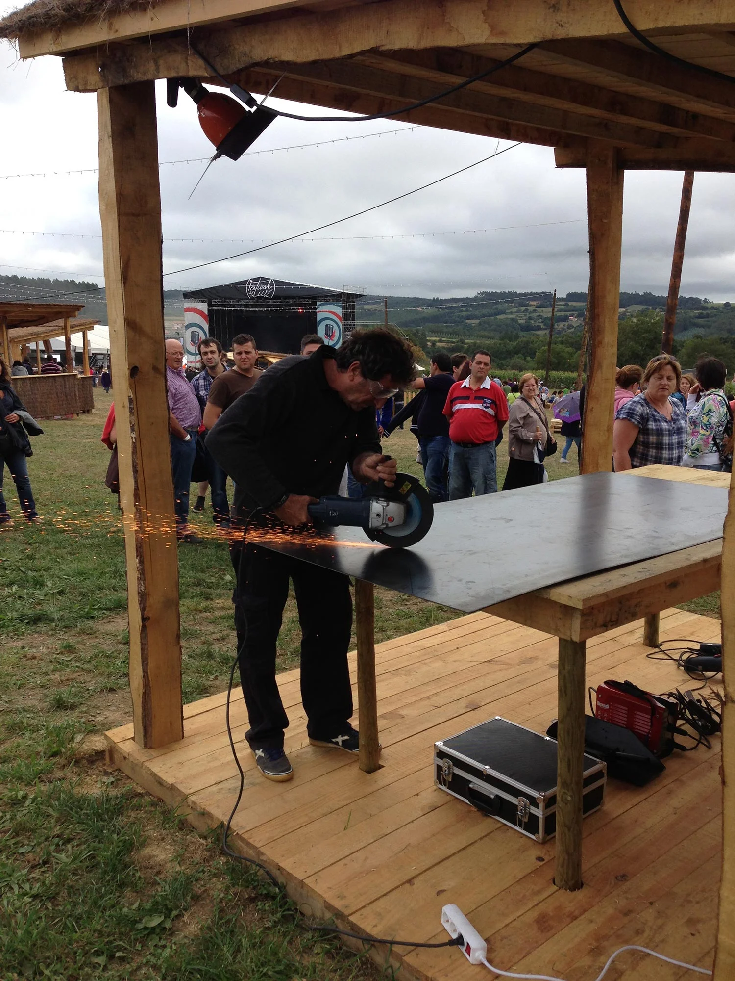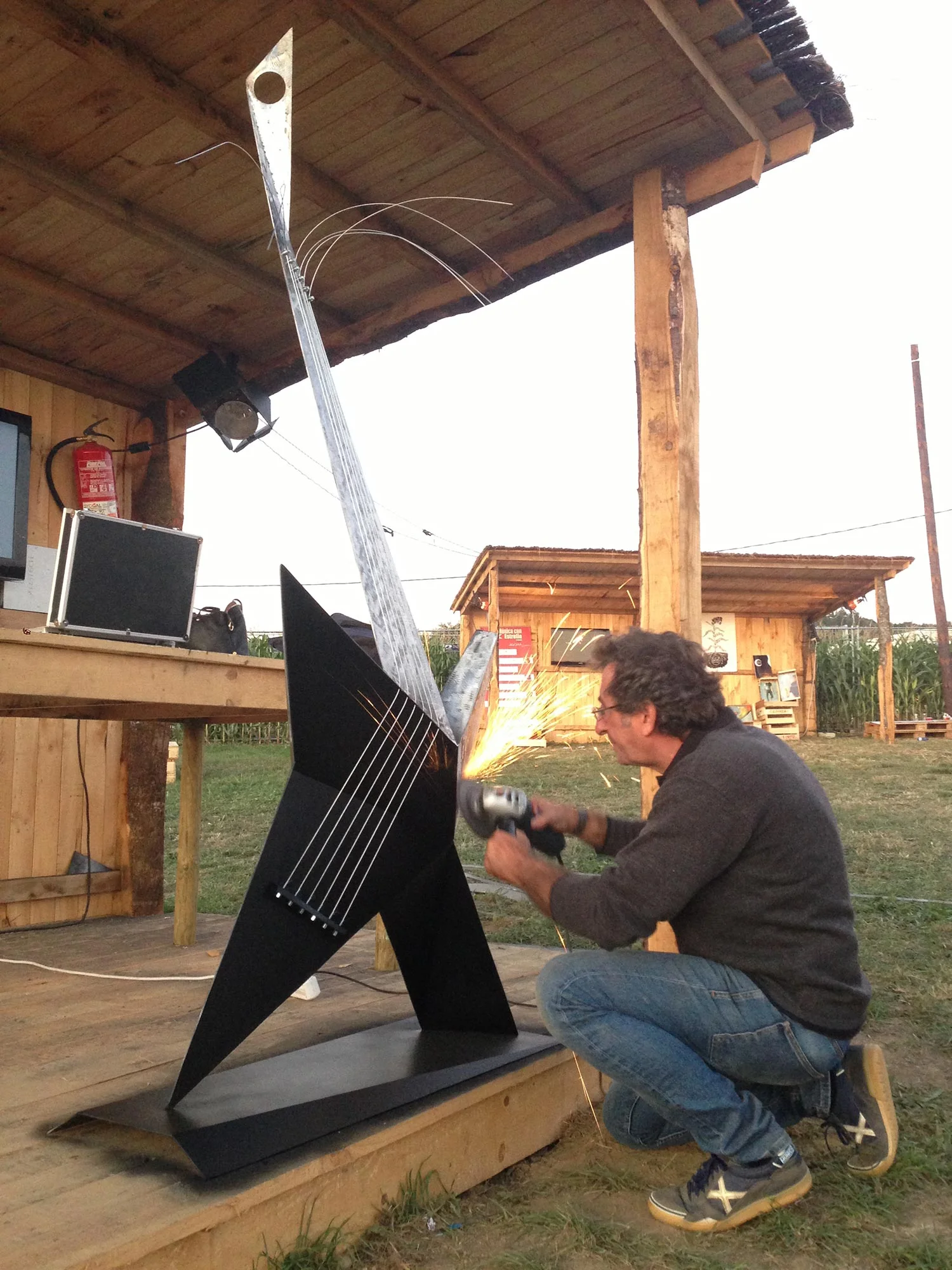 In September 2013, artist Chico Repullo is invited to attend a performance in the second edition of the “Festival de la Luz” (Light Festival); a charity activity organized by the popular singer Luz Casal in her hometown Boimorto, Galicia. As this was a rock festival, Chico made a steel mid-format sculpture, a replica of one of his pieces from the collection “ENTREACORDES” (BETWEEN CHORDS). The piece was donated for charity.